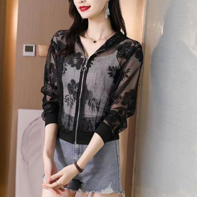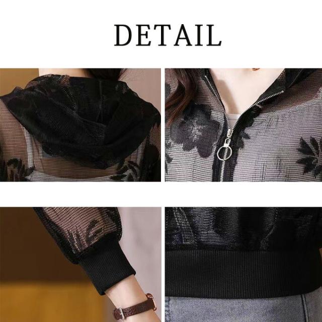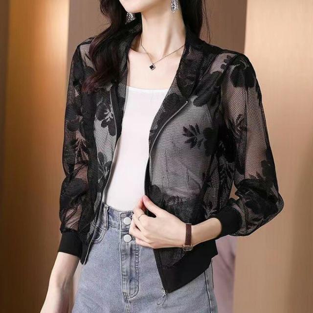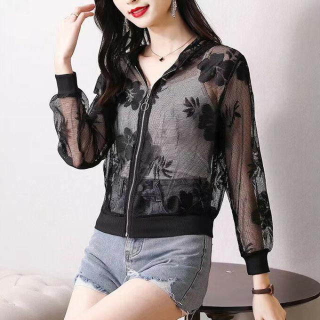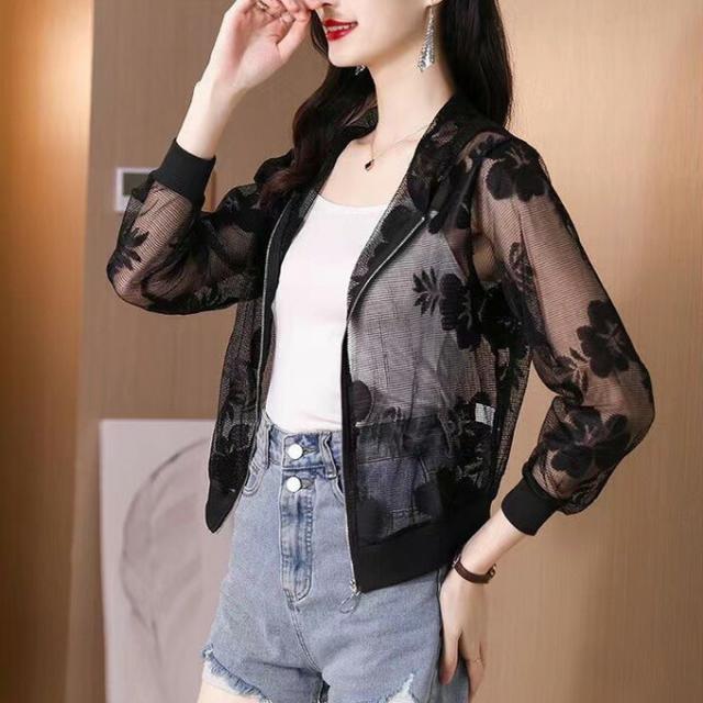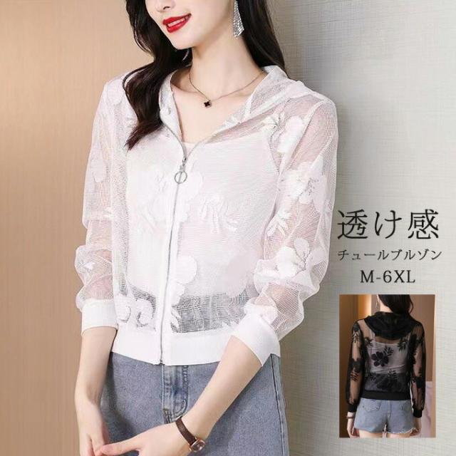 シースルーブルゾン シアーブルゾン チュール 花柄 ジャケット レディース 透け感 カジュアル ジャンパー 長袖 アウター 羽織り UVカット 大きいサイズ オシャレ 春夏新作 薄手