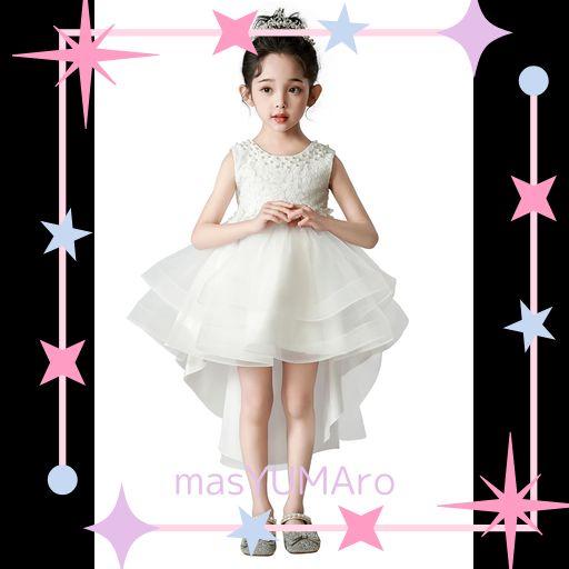 [KAYIYASU] 子供 ドレス 女の子 卒業式 発表会 パーティードレス スピーカースリーブ トレーン 結婚式 花柄 ファスナー フォーマル 入園式 ジュニア ガールズ 誕生日 3-13歳(160 ホワイト(花柄))