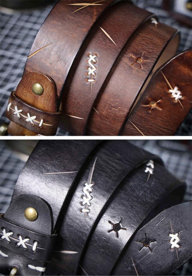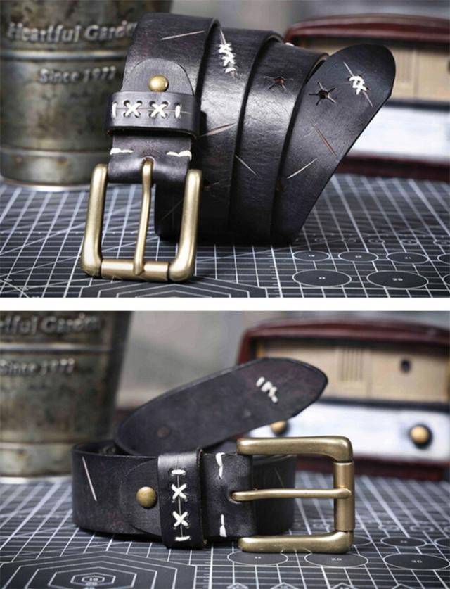 ベルトラボでは、質感たっぷりのデザインに、しっかり太めのピンをあわせ、着けた時の安定感を高めています。