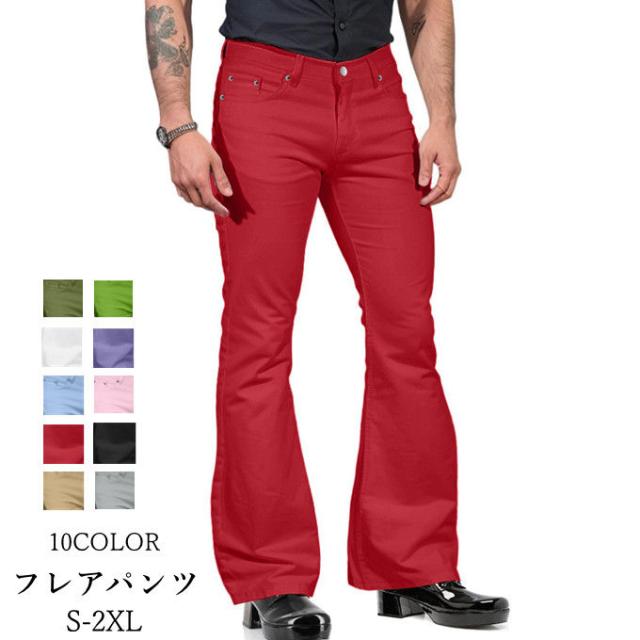 パンタロン メンズ フレアパンツ ワー メンズファッション 続々登場 ブラック ホワイト グリーン カーキ パープル ベージュ グレー ブルー ピンク レッド S M L XL 2XL