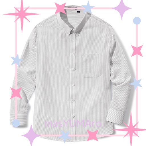[HISDERN] メンズ シャツ 長袖 オックスフォード ワイシャツ ノーアイロン カジュアル ビジネス ストライプ 白/グレー XL