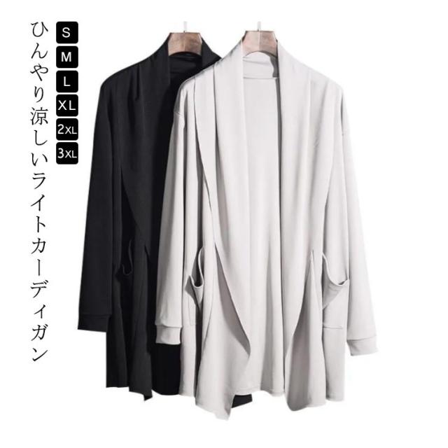 トップス 肩掛け 通気性 カーデ メンズ ショールカラー 春夏 カーディガン ライトアウター 春アウター ロング丈 無地 シンプル ビッグシルエット 薄手 春 体型カバー ロングカーディガン ゆったり