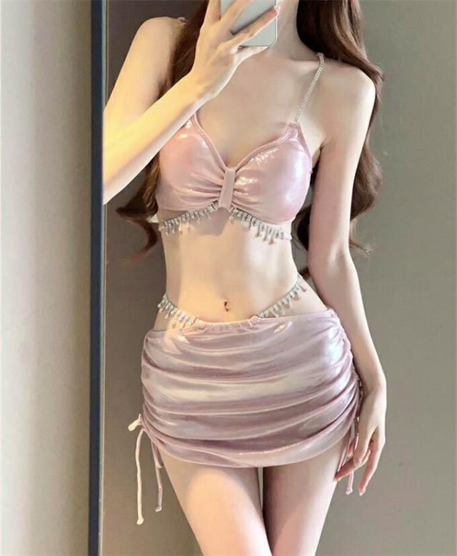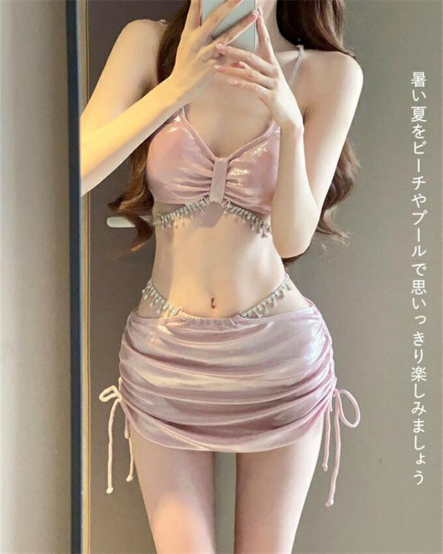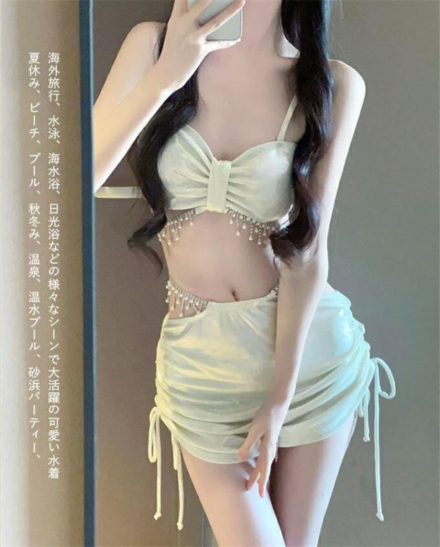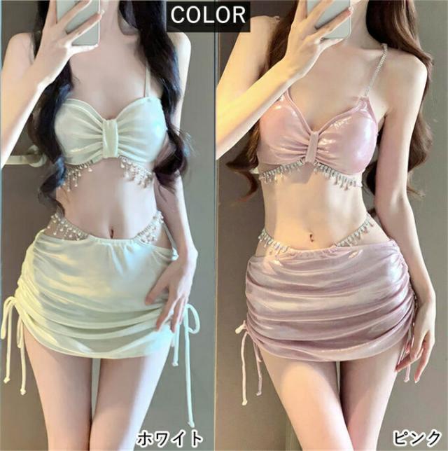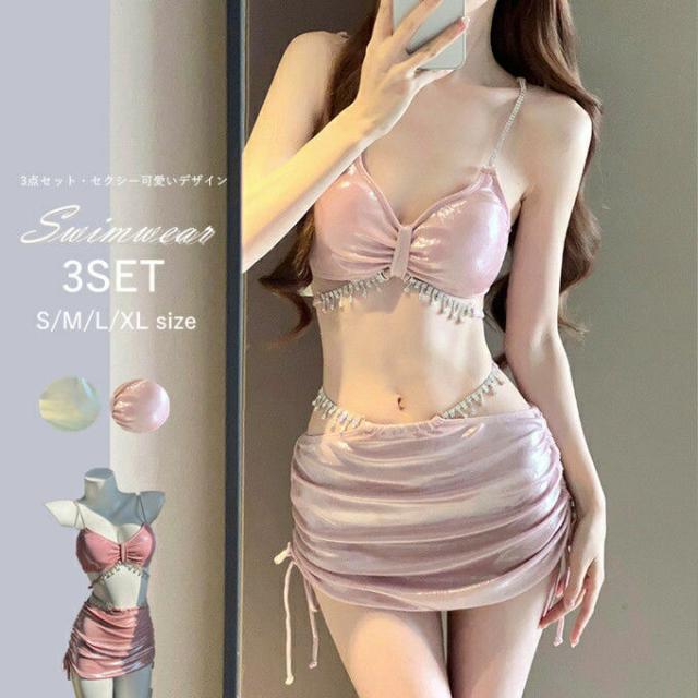 3点セット 水着 レディース 体型カバー スカート バックリボン お洒落 大人 セクシー ビキニ シンプル 盛れる おしゃれ 韓国 ラインストーン飾り リゾート 水泳 かわいい