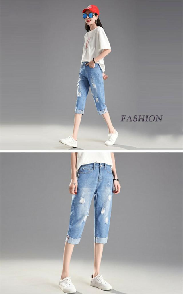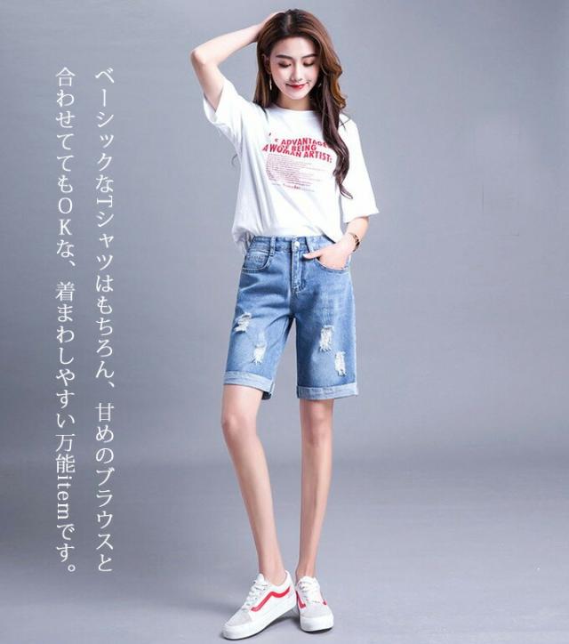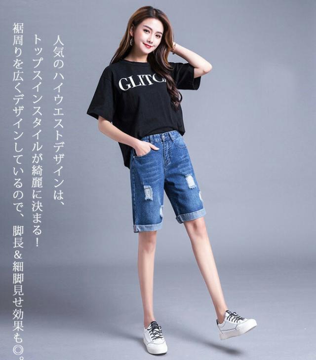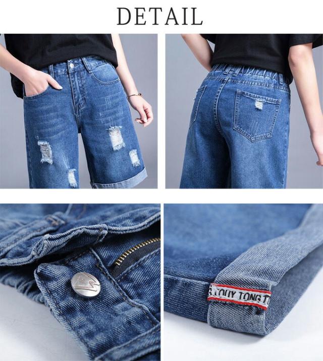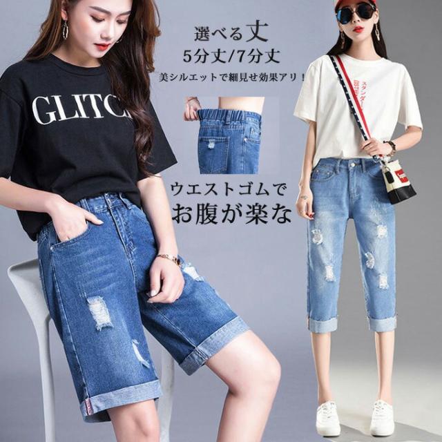 デニムパンツ レディース 五分丈 七分丈 ストレッチ 夏用 ダメージジーンズ ウエストゴム ジーパン ロールアップ デニムハーフパンツ ゆったり 着痩せ カジュアル おしゃれ 薄手 通学 夏 キ 通勤