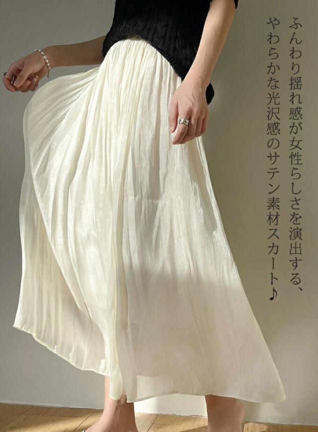 スカート サテン フレア 膝下丈 ひざ下丈 ミディ丈 ミモレ丈 フレアスカート プリーツスカート ロング マキシスカート プリーツ aライン ゆったり Aライン 高級感 ロングスカート 春夏 光沢