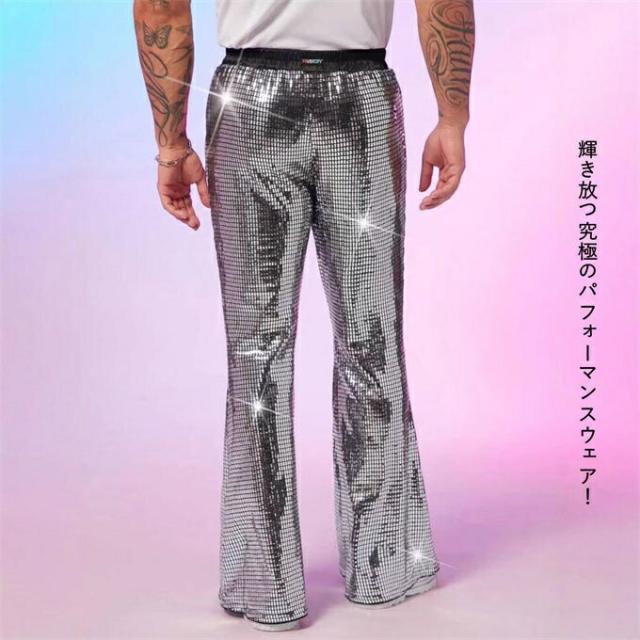 フレアパンツ メンズ ロングパンツ ラッパズボン ヒップホップ 大きいサイズ ジャズダンス 長ズボン スパンコール 舞台演出服 男性 ダンス衣装 DS パンク風 演出服 団体服 ゴ 舞台