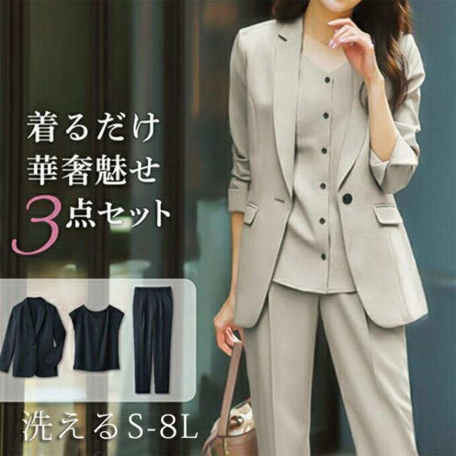 洗える セレモニースーツ 入学式 ママスーツ 卒業式 ママ 母 スーツ レディース 大きいサイズ パンツスーツ セットアップ 3点セット 春夏秋 S-8L オシャ レディーススーツ
