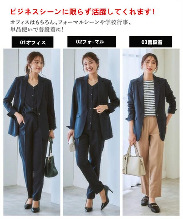 ■関連キーワード:スーツ レディース パンツスーツ テーパードパンツ ジャケット ブラウス セットアップ ビジネススーツ オフィス 通勤 リクルート フォーマルスーツ フォーマル セレモニー セレモニースーツ レディース スーツ洗える あらえる ウオッシャブル 洗濯 洗濯着OK 洗濯可 体型カバー ゆったり ゆったりサイズ ゆる 華奢見え 着痩せ 細見え 楽 らくちん 楽ちん 仕事服 OL 新卒 面接 転職 仕事 会社 卒園式 卒業式 入学式 入園式 卒園式 学校行事 学校見学 保護者会 発表会 参観日 幼稚園 小学校 保育園 お受験 受験 面接 面談 レディース 女性 女性用 キレイ お洒落 おしゃれ 20代 30代 40代 50代 大きいサイズ 小さいサイズ レディース 春 夏 秋 冬 オールシーズン