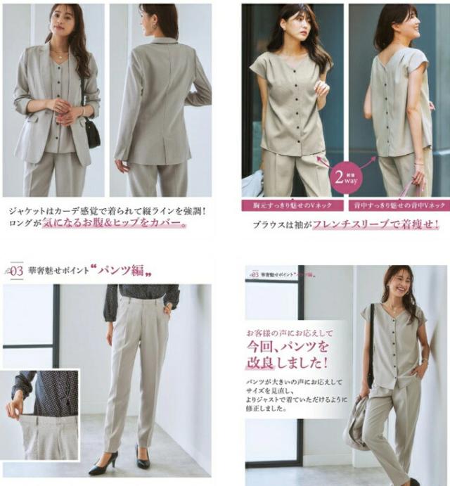 ・スーツとしてはジャケットとボトムのスーチングだけでなく、ブラウスとボトムの1トーンブラウススーツコーデがお楽しみいただけます!