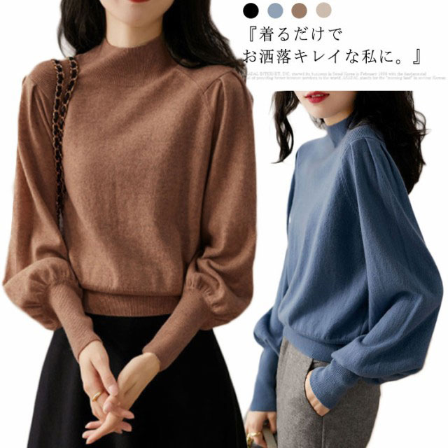 レディース ボリューム袖 プチハイネッ トップス ニット セーター セーター 豊富な品揃え ブルー ブラック キャメル ベージュ S M L XL 2XL 3XL