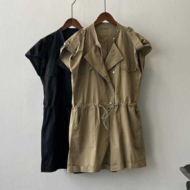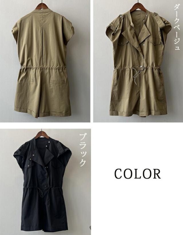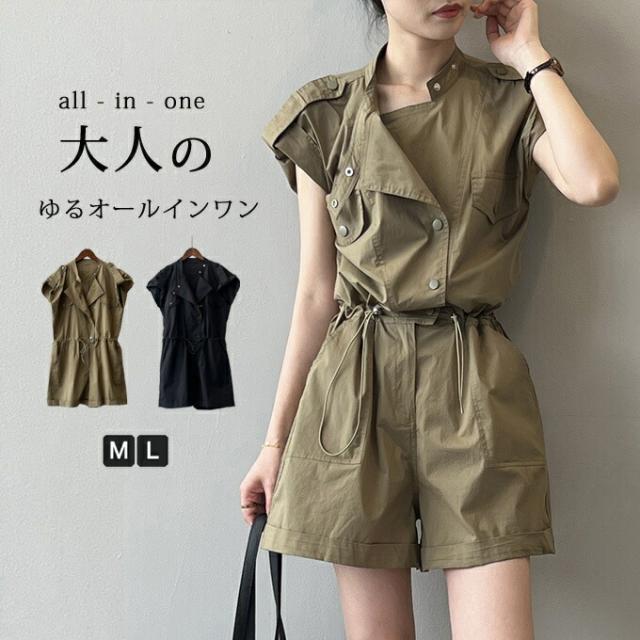 ショート サロペット レディース オー オールインワン サロペット 早い者勝ち ダークベージュ ブラック M L