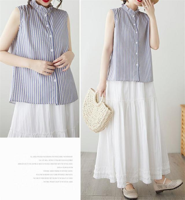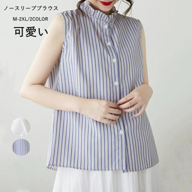 タンクトップ ノースリーブブラウス レ レディースファッション 豊富な品揃え ストライプ ホワイト M L XL 2XL