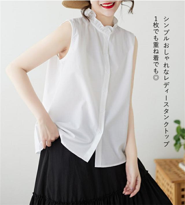 タンクトップ ノースリーブブラウス レディース トップス シャツ シャツブラウス フリル シングル 大人 ガーリー インナー 重ね着 かわいい オシャレ 通勤 オフィス カジュアル お出かけ ビジネス