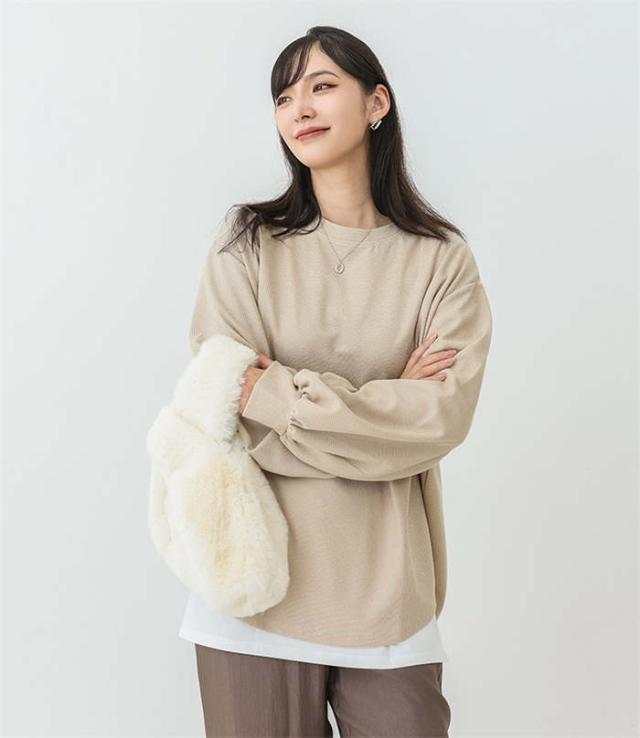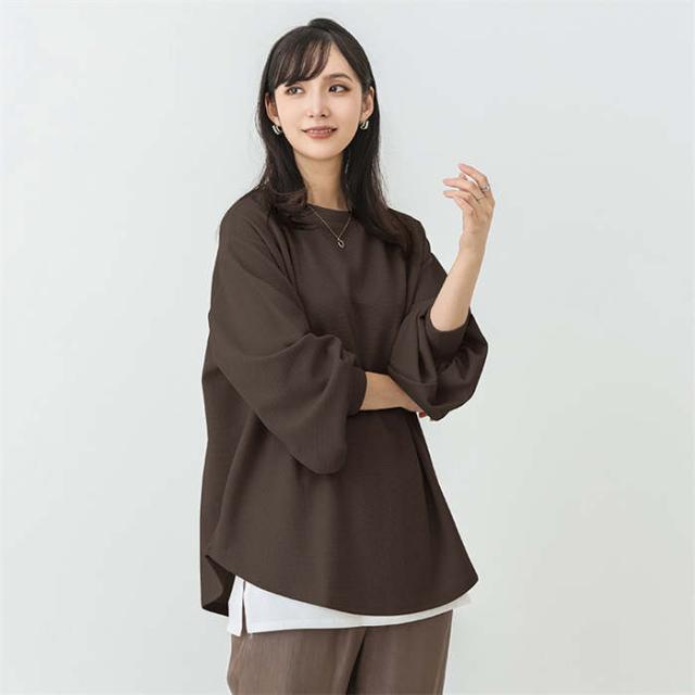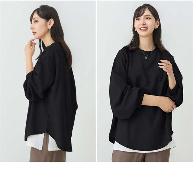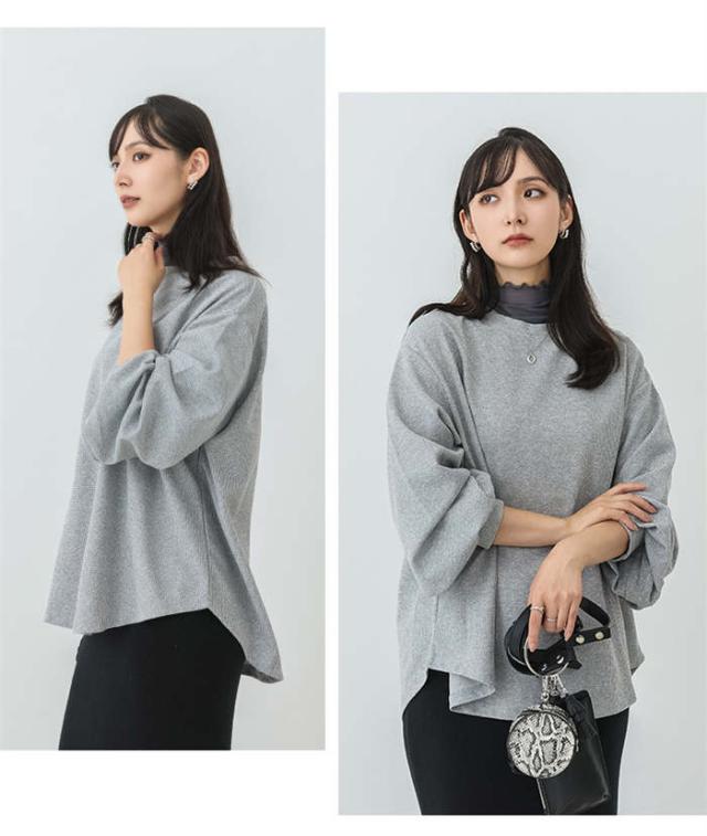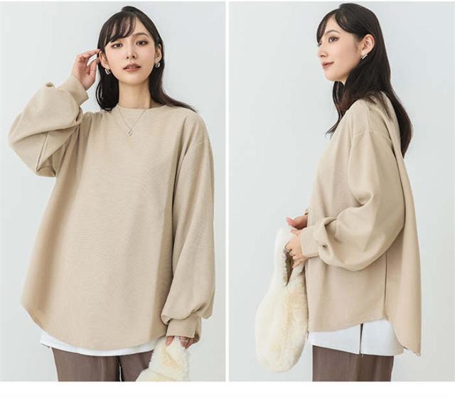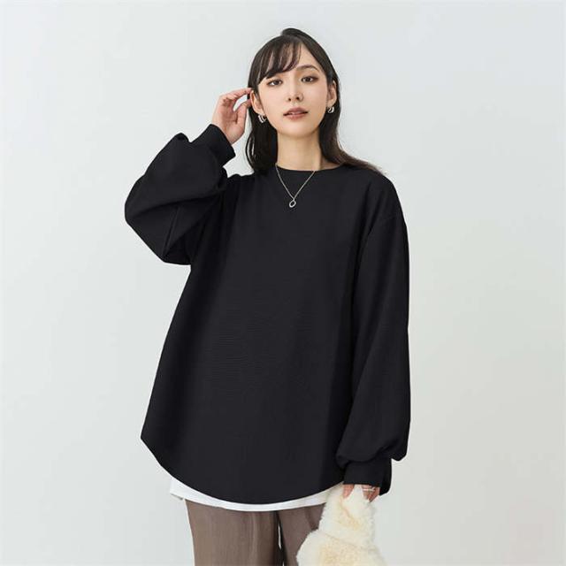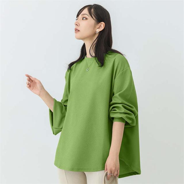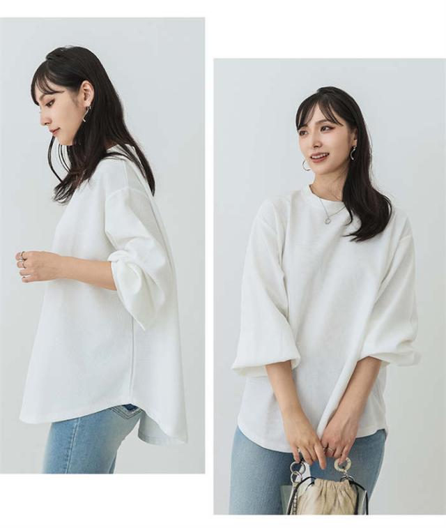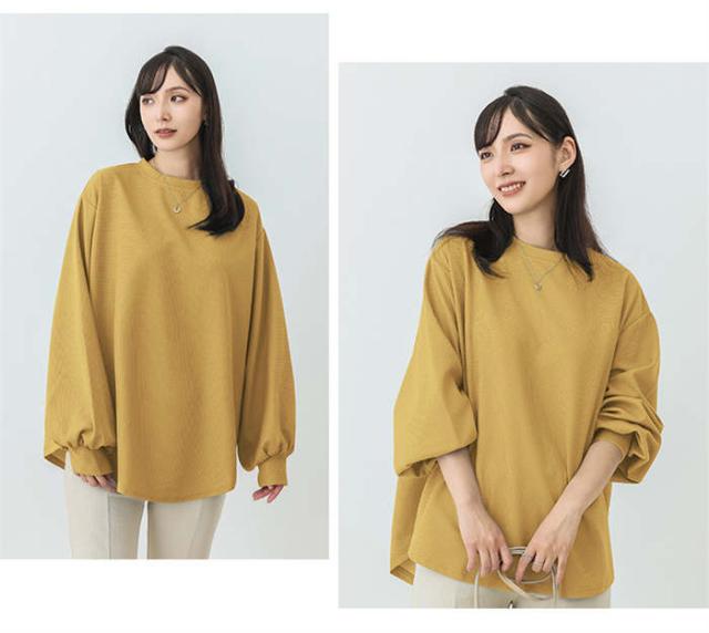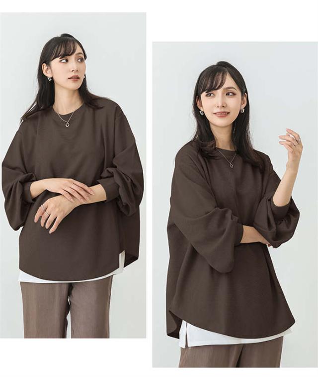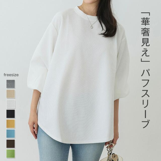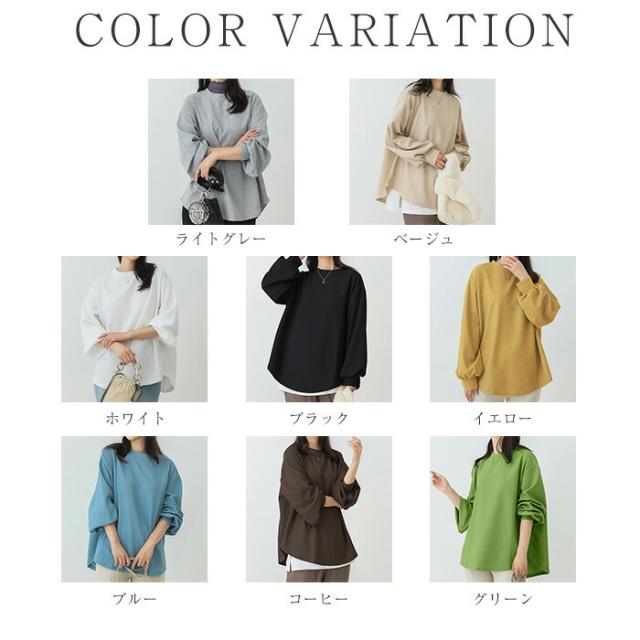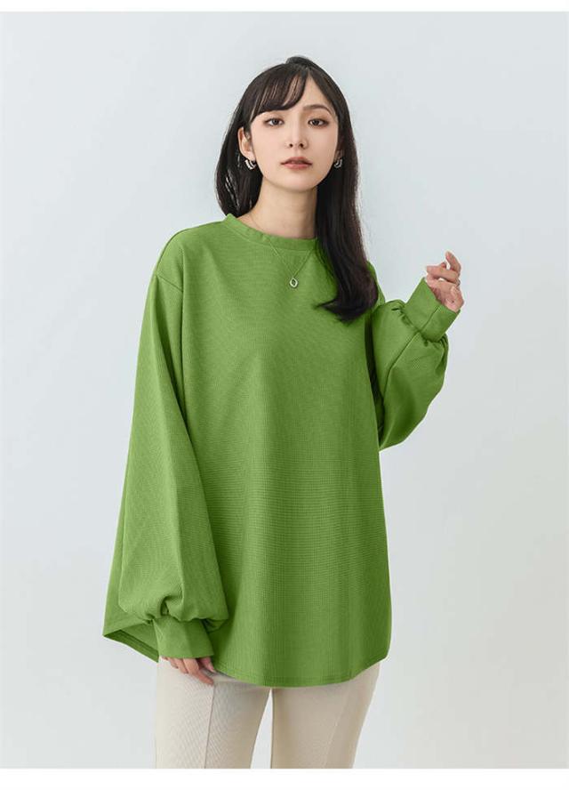 カットソー スウェット トレーナー レディース チュニック トップス 春 夏 秋 無地 長袖 ゆったり パフスリーブ プルオーバー 楽ちん ビッグシルエット 体型隠し 薄手 ボリューム袖 イ シンプル