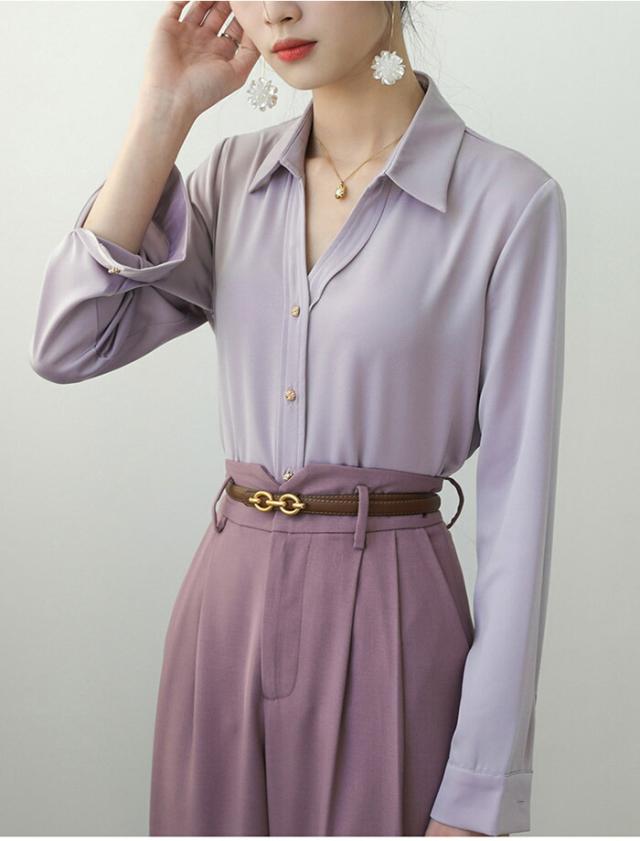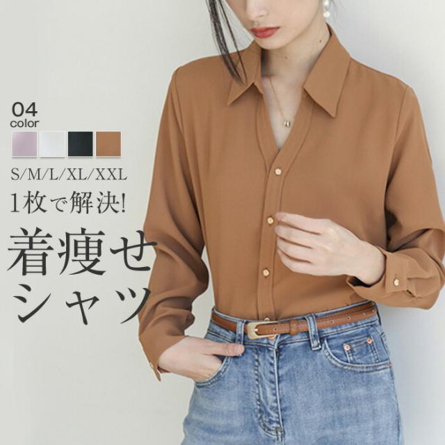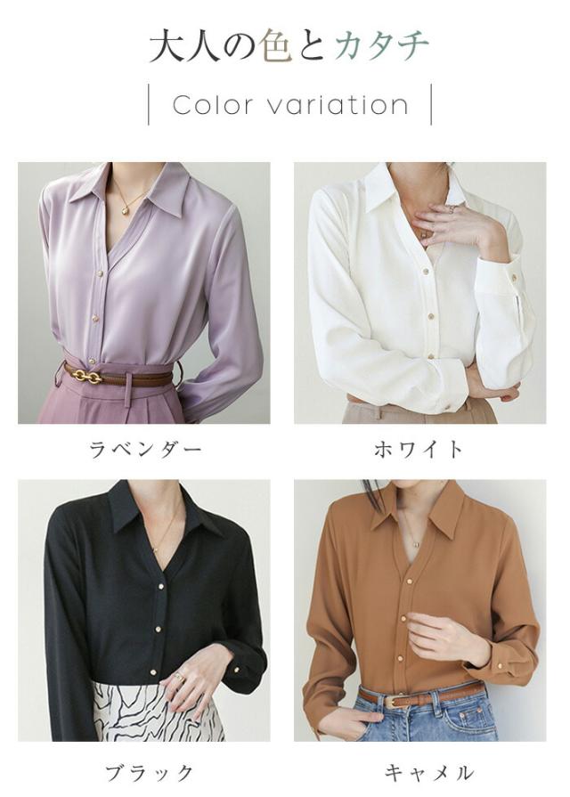 シャツ レディース ブラウス 長袖 お トップス シャツ ブラウス 続々登場 ホワイト ブラック ラベンダー キャメル S M L XL XXL