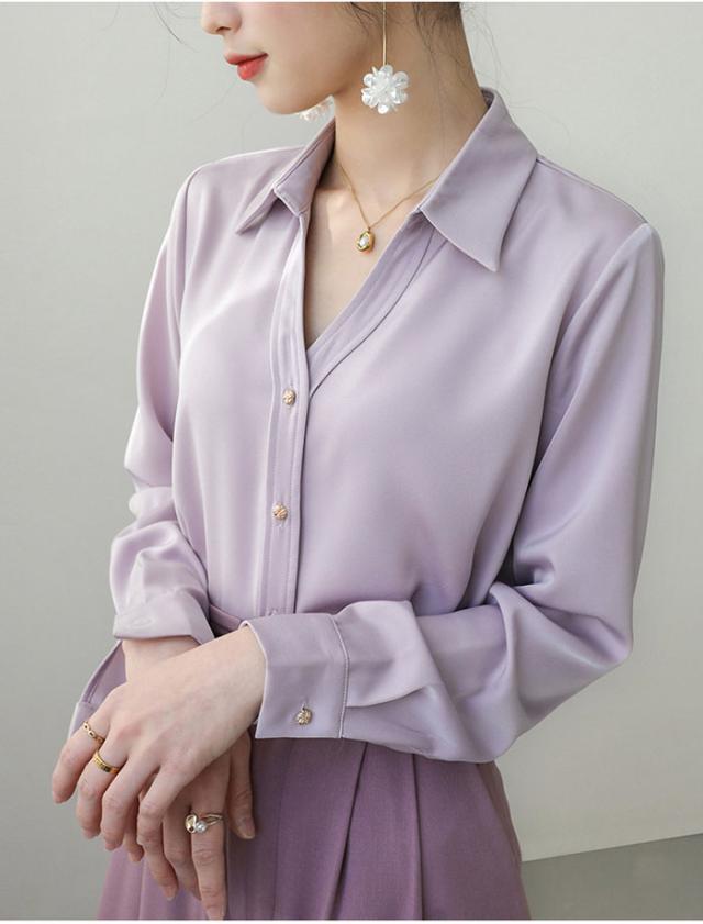 シャツ レディース ブラウス 長袖 おしゃれ トップス 大きいサイズ きれいめ とろみ素材 フォーマル オフィス とろみシャツ 通勤 通学 OL vネック 大人 ホワイト ブラック 黒 ラベンダー 白