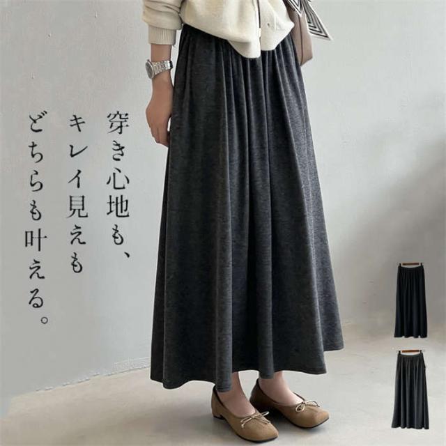 スカート フレア 秋冬 春秋 レディース ロングスカート ロング ミディアム マキシ フレアスカート ミモレ丈 伸びる 伸縮性 ウエスト総ゴム キレイめ マキシスカート ミモレスカート イン Aライン