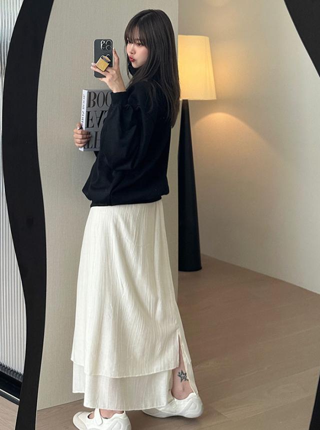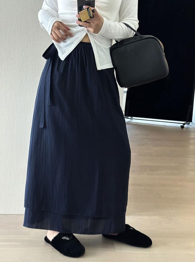 ラップスカート スカート レディース ボトムス ロング ラップ フレア フレアスカート ロングスカート 無地 レイヤード 重ね着風 巻きスカート ウエストゴム 高見え 上質 ゆったり アシンメトリー