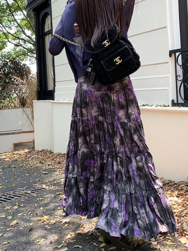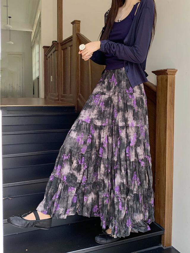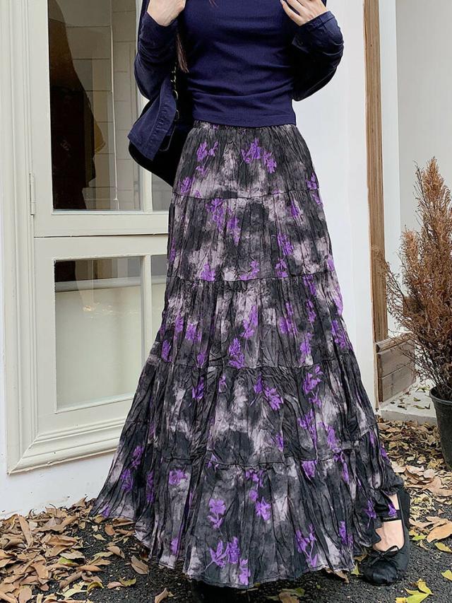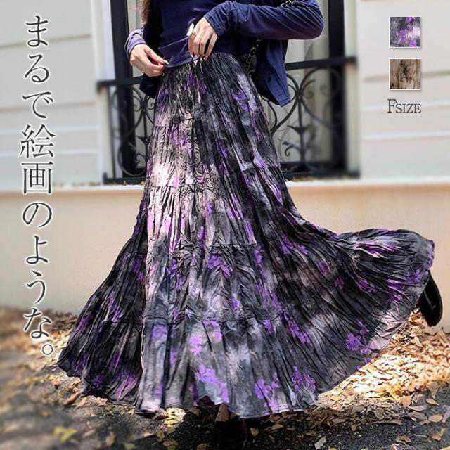 プリーツスカート 花柄スカート ロング ボトムス スカート 通販 パープル ベージュ