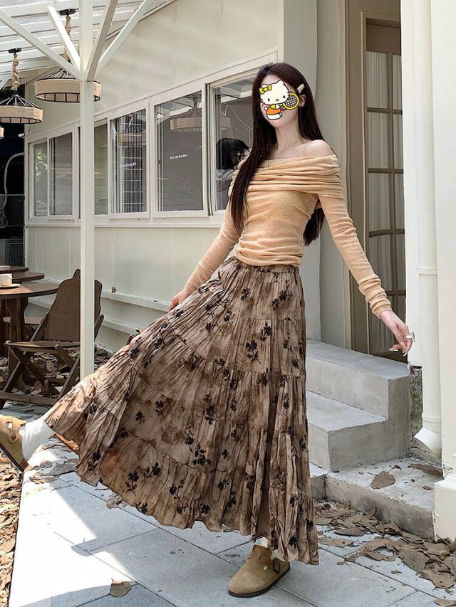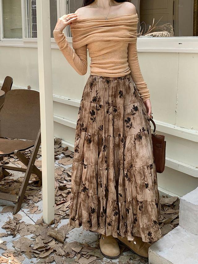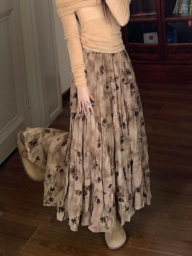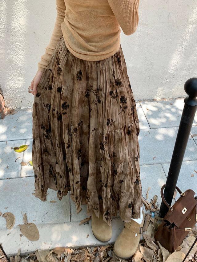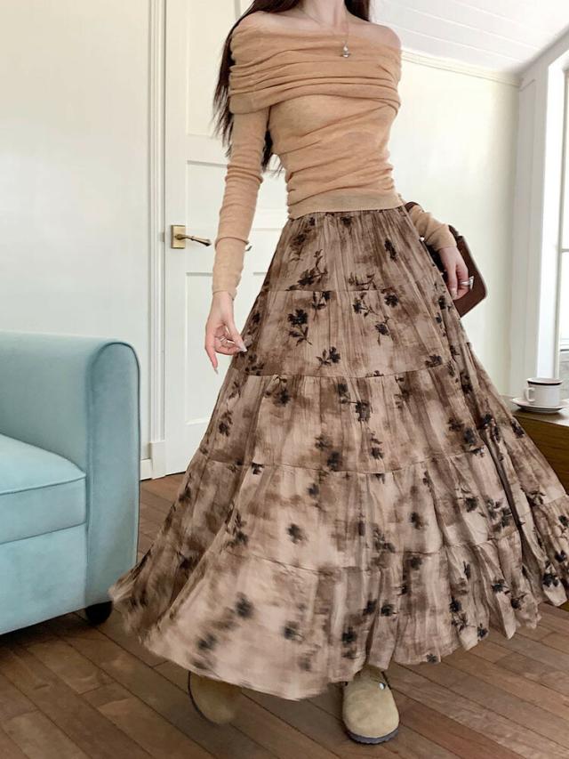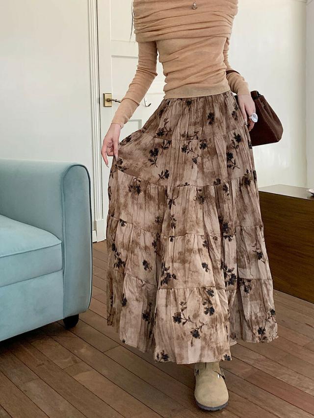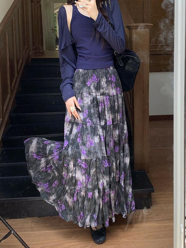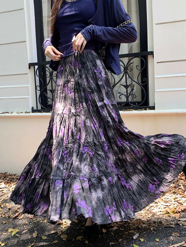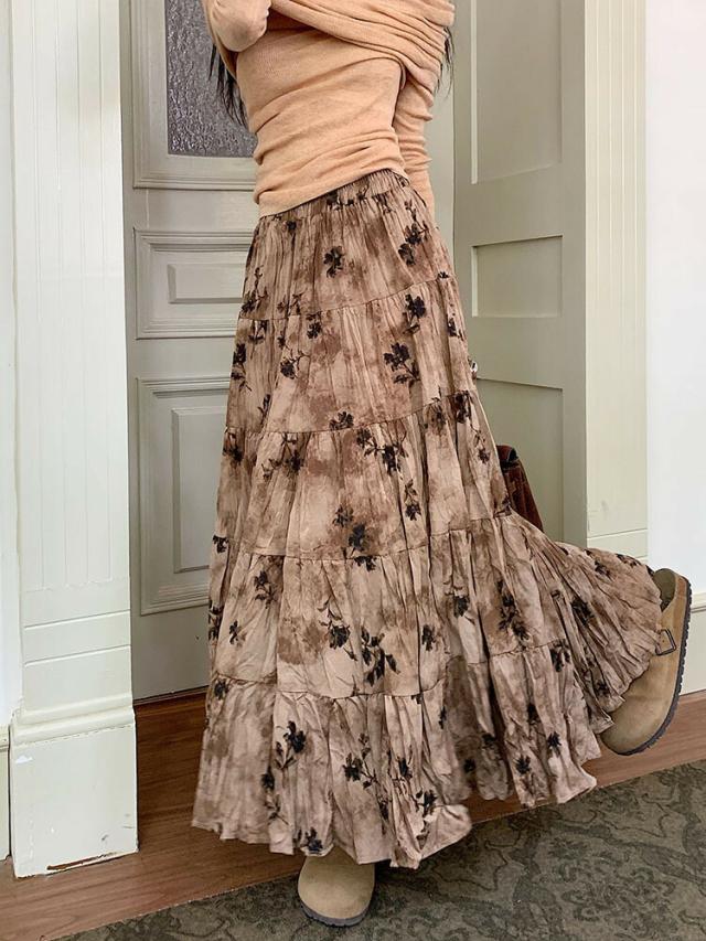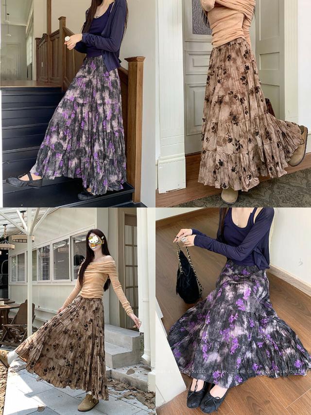 プリーツスカート 花柄スカート ロングスカート マキシ丈スカート 春 レディース スカート 花柄 ボトムス フレア ハイウエスト ウエストゴム 高見え ゆったり おしゃれ ガーリー キレイ 体型カバー