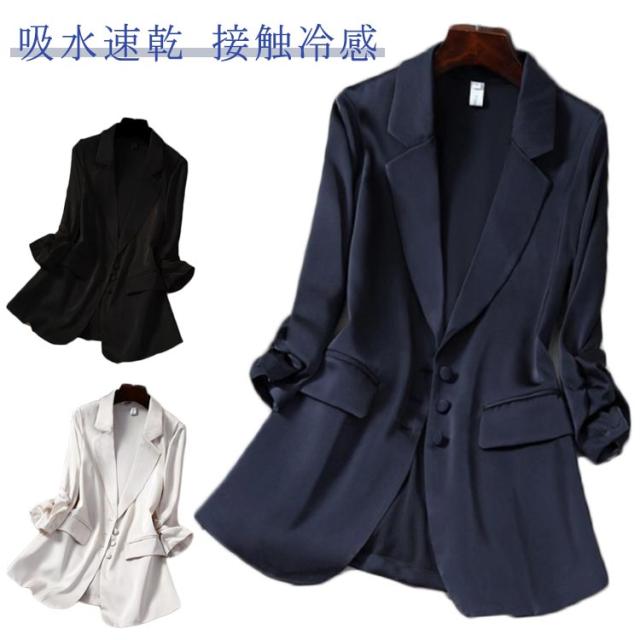 サマージャケット ママスーツ カジュアルスーツ 夏スーツ レディーススーツ アイスシルク ゆったり 吸水速乾 ジャケット 日よけ スーツジャケット オフィスカジュアル テーラードジャケット 日焼け止め