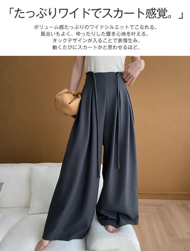 ワイドパンツ パンツ タックパンツ レディース ボトムス ロング タックワイドパンツ ワイド ロングパンツ ガウチョパンツ ゆったり 長ズボン 無地 シンプル きれいめ 体型カバー モード 大 細見え