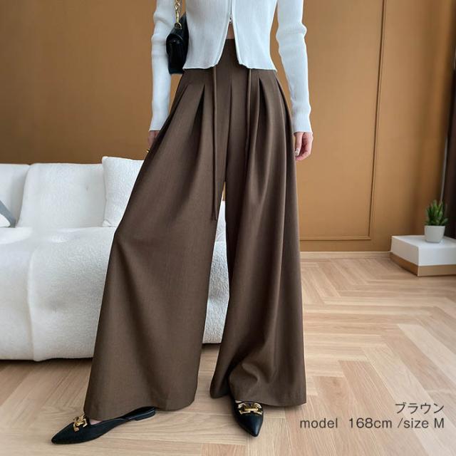 ワイドパンツ パンツ タックパンツ レ レディースファッション 超目玉商品 ブラック グレー ブラウン S M L XL
