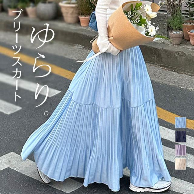 スカート ロングスカート レディース ボトムス きれいめ プリーツスカート ロングプリーツスカート フレアスカート フレア マキシ マキシスカート ハイウエストスカート 光沢 ウエス インナースカート