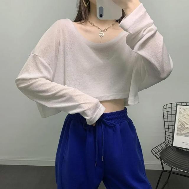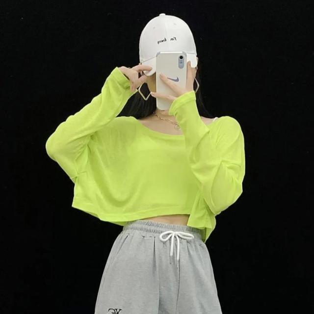 ヒップホップ 韓国風 ダンス衣装 へそ出し 長袖 トップス tシャツ ショート丈 レディース シアートップス カットソー メッシュ 韓国 透け感 カジュアル M L X シースルー