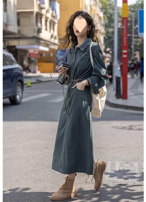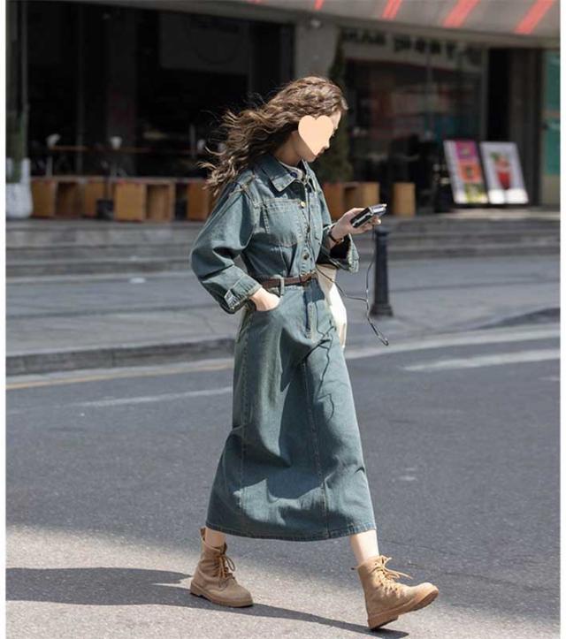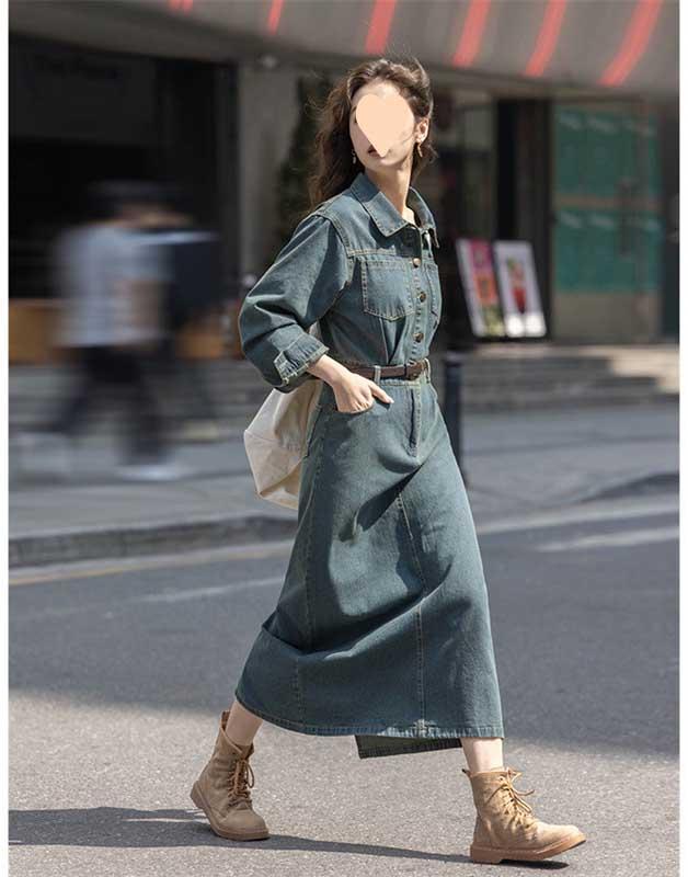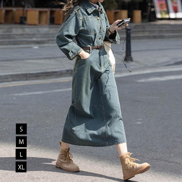 デニムワンピース サロペット デニム ワンピース 春 秋 長袖 ワンピ ロング丈 ロングバックスリットきれいめ レディース ゆったり 体型カバー シンプル 無地 柔らか 着心地 着 カジュアル