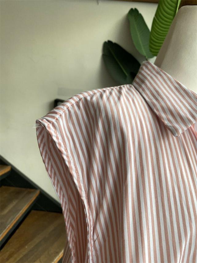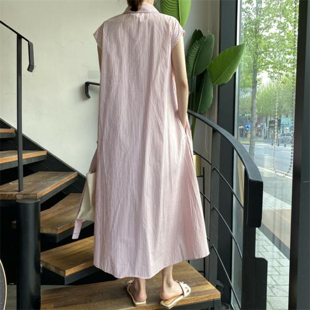 シャツワンピース ノースリーブ ストライプ ワンピース ロング ロングシャツ 折り襟 前開き 春 夏 大人 マキシ丈 カジュアル シンプル ロング丈 Aライン おしゃれ 薄手 ゆったり き 体型カバー