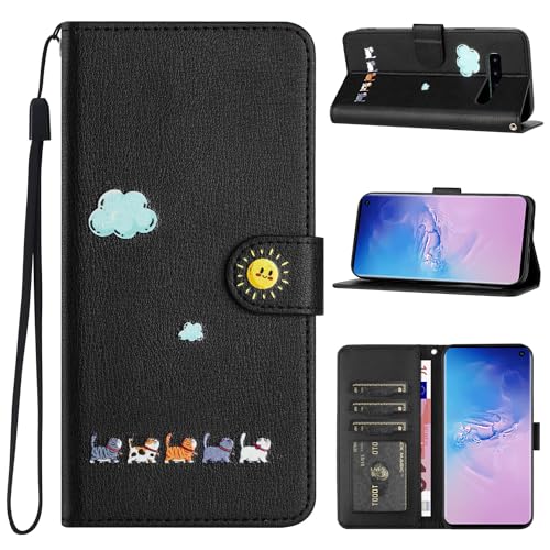 Galaxy S10 ケース 手帳型 人気 サムスン ギャラクシーs10 PUレザー S10 手帳 耐衝撃 sc03l SC-03L SCV41 可愛い 猫柄 カバー おしゃれ 軽量 スマホケース エス10 カバー マグネット式 カード収納 スタンド機能 (6.1インチ) ブラック