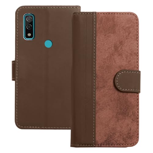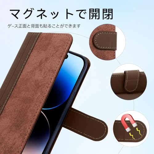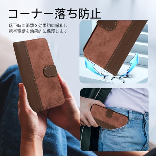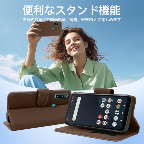 Arrows We F-51B ケース 手帳型 富士通 アローズ We F-51B 全面保護 合皮レザー デニム 組み合わせ ドコモ f-51B 手帳型ケース カード収納 横置きスタンド機能 arrows F-51B カバー 財布型 シンプル ビジネス arrows We f-51b スマホケース -茶色