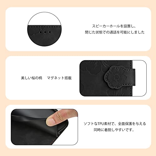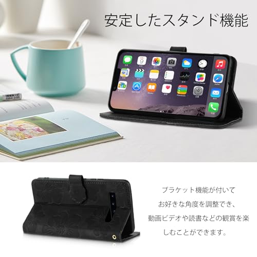 Galaxy S10 ケース 手帳型 人気 おしゃれ PUレザー 耐衝撃 S10 手帳 sc03l SC-03L SCV41 カバー スマホケース かわいい 桜ケース エス10 カバー お洒落 カード収納 マグネット式 スタンド機能 軽量 (6.1インチ) くろい