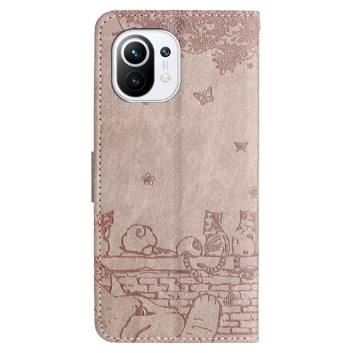 Xiaomi 11 lite ケース 手帳型 内蔵マグネット 軽量 耐衝撃 スマホケース 桜の下の猫 収納 財布型 人気 PUレザー 横置き 薄型 マグネット式 ライトパープル