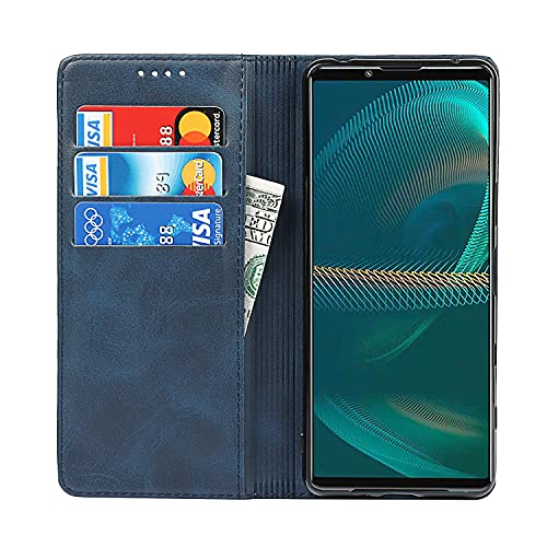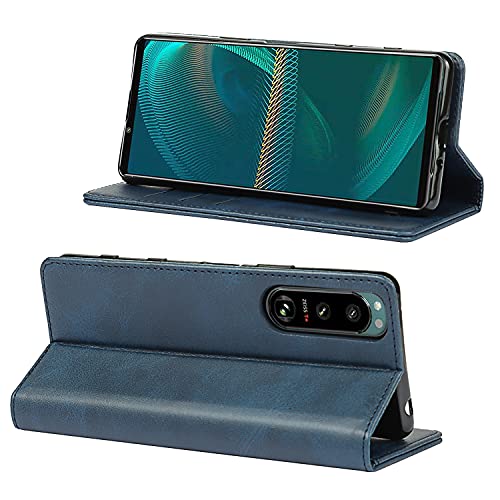 Xperia 5 IV SO-54C SOG09 ケース 手帳型 保護カバー カード収納 マグネット ブラケット機能 耐衝撃 軽量 モダン シンプル PUレザー 折りたたみ フルカバー 男性 女性 スマホケース (ダークブルー)