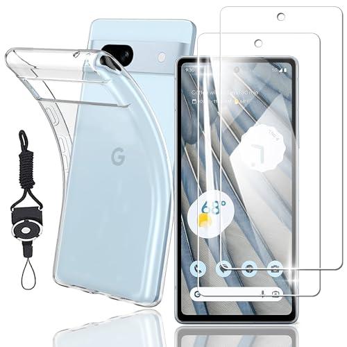 Google Pixel 7A フィルム + ケース グーグルピクセル7a 強化ガラスフィルム (2枚) +保護カバー (1枚) 透明保護ソフト シリコンケース+ 携帯ストラップ 付属 強化ガラス 硬度9H 耐指紋 撥油性 超高質感 スクラッチ防止 99%高透過率 気泡ゼロ 軽量 透明ケース+ガラスフィルム