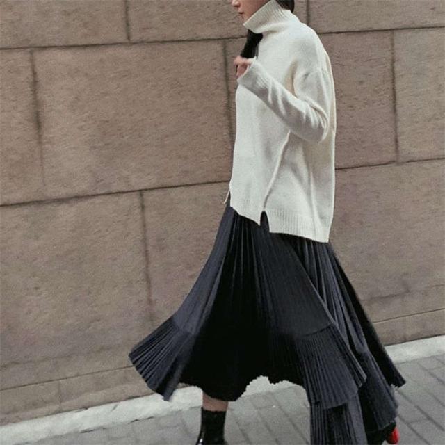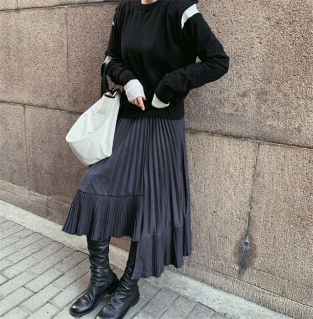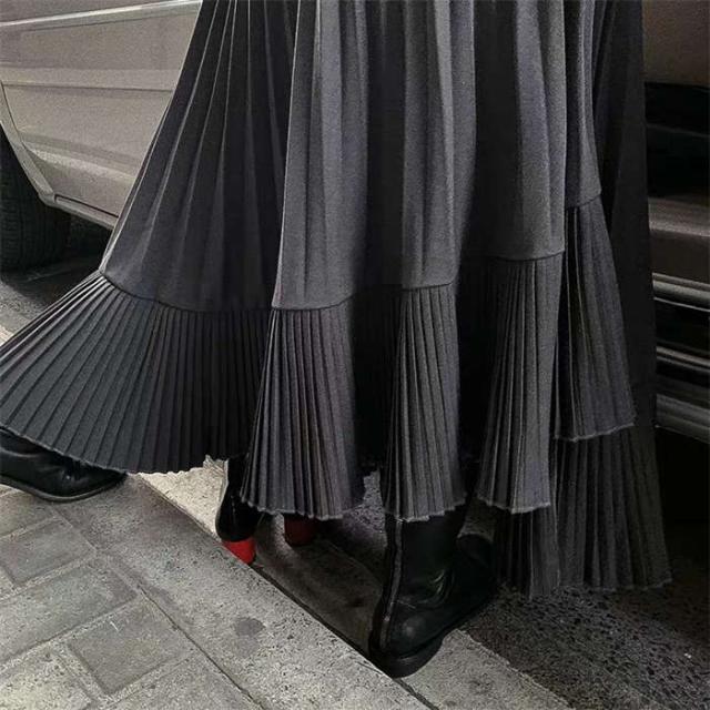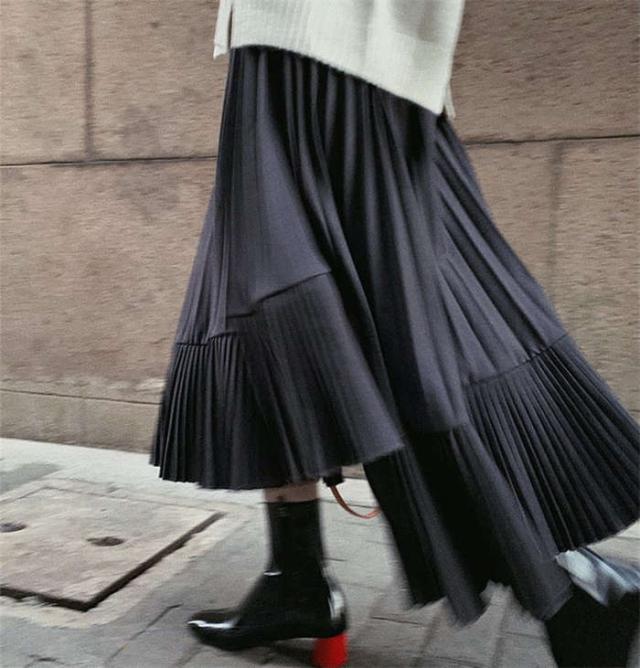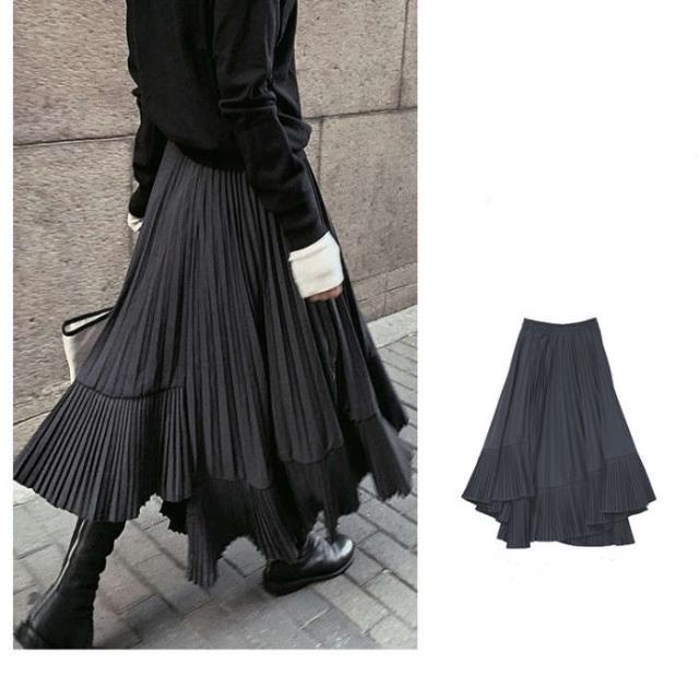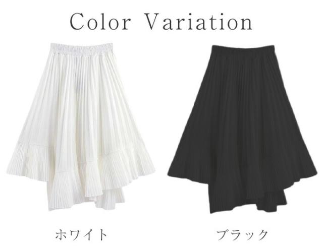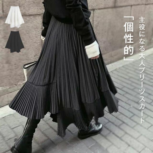 スカート レディース ロングスカート プリーツスカート アシンメトリー 不規則 裾変形 春 夏 秋 無地 ミモレ丈 ひざ下 ウエストゴム Aライン フレア 個性的 ボトムス 体型カバー おしゃ 着痩せ