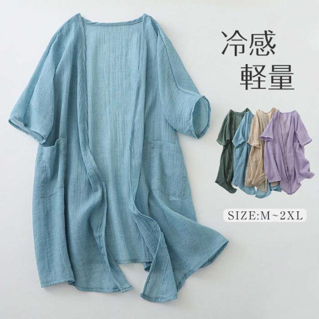 カーディガン 夏 夏用 uv 冷感 薄手 大きめ UVカット レディース 綿麻 リネン ロングカーディガン 半袖カーディガン 薄手カーディガン ロング 羽織 五分袖 二つの腕カバー 日焼け対策 七分袖