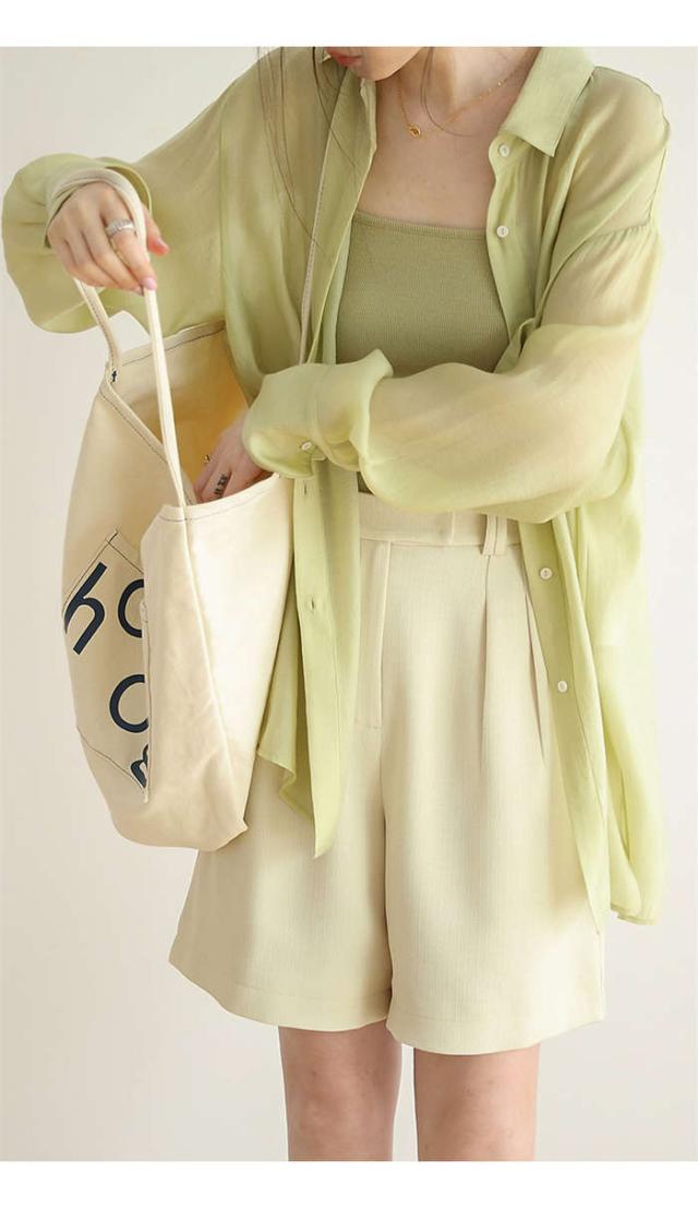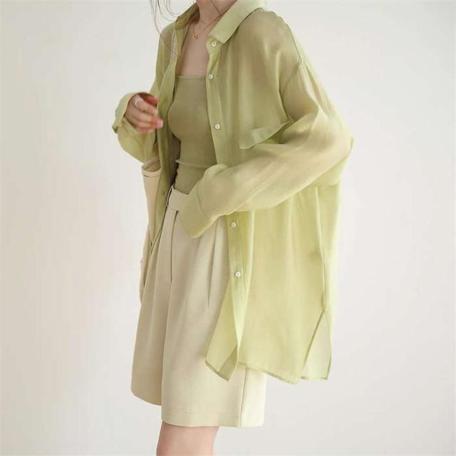 シアーシャツ レディース 長袖 ブラウス シアー シャツ 春 夏 オーバーサイズ 透け シースルー ビッグシルエット ゆったり 清涼 羽織 トップス 体型カバー 冷房対策 きれいめ おしゃれ 透け感