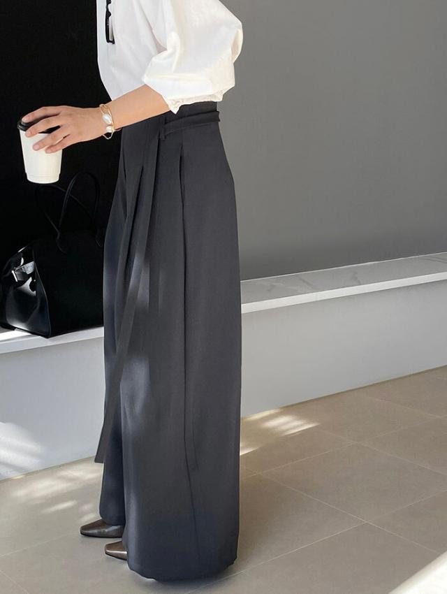着痩せが叶う上品な印象のワイドパンツ。