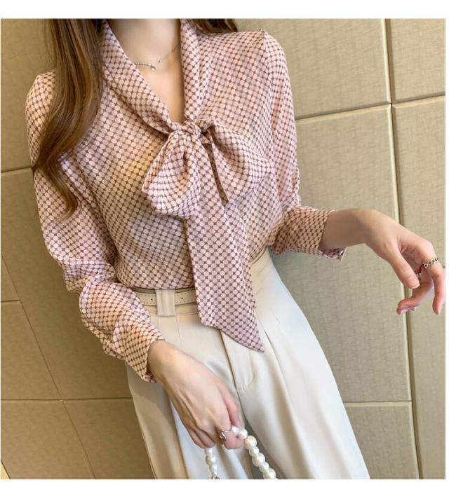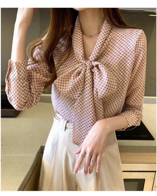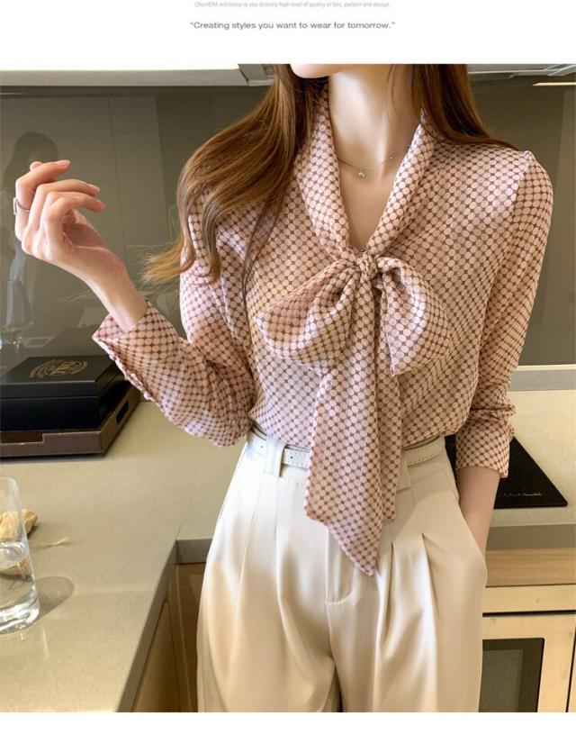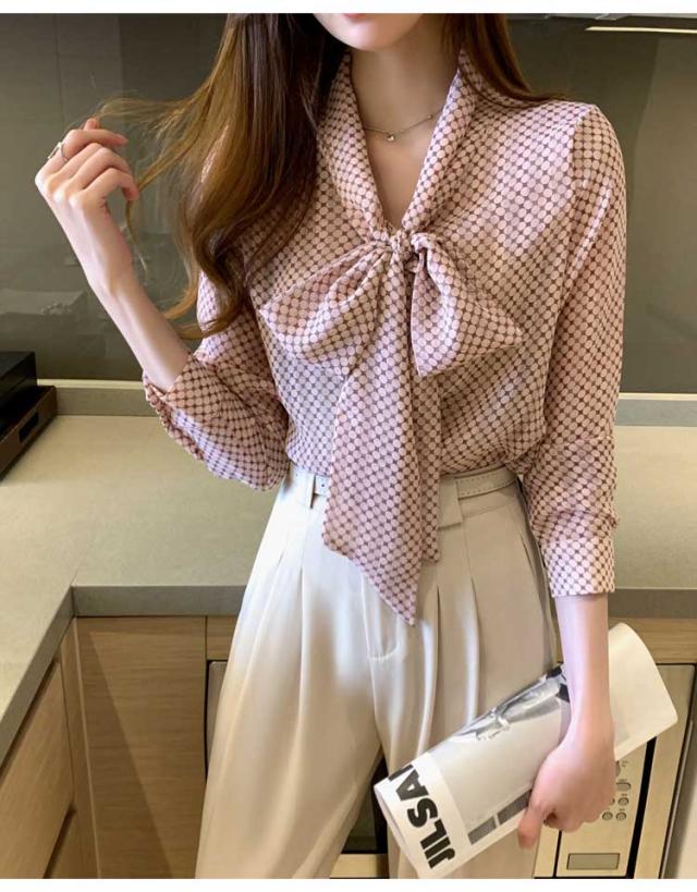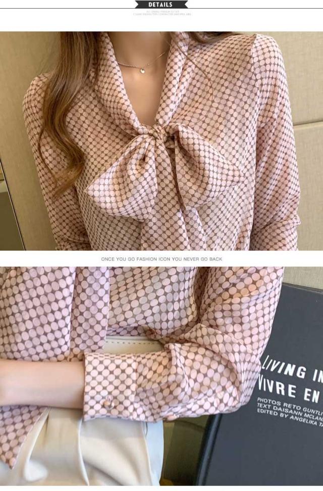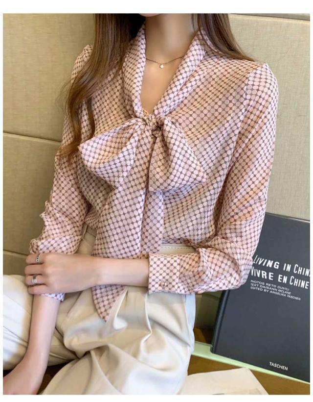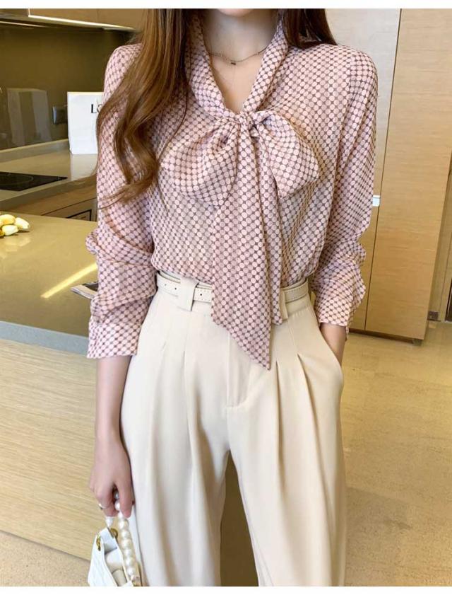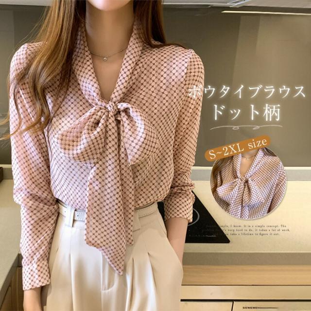 ブラウス ボウタイブラウス レディース ドット柄 シフォンシャツ トップス 春 夏 秋 長袖シャツ シフォン きれいめ ボウタイ リボン付き 大人可愛い ゆったり 通勤 OL オフィス カジュア 通学