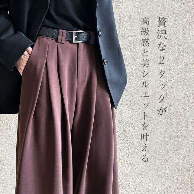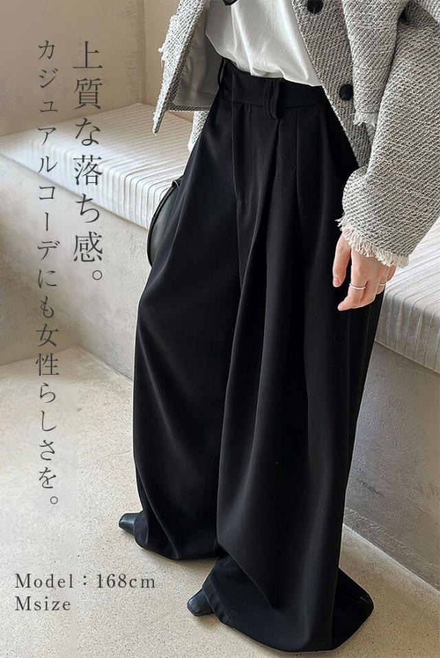 タックが入って綺麗なシルエット、ワイドで大人っぽい雰囲気たっぷりに。