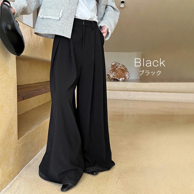タックワイドパンツ レディース タックパンツ ワイドパンツ ロングパンツ ボトムス パンツ ゆったり きれいめ 無地 シンプル ワイド ロング 長ズボン 高級感 通勤 オフィス フォーマ 大きいサイズ
