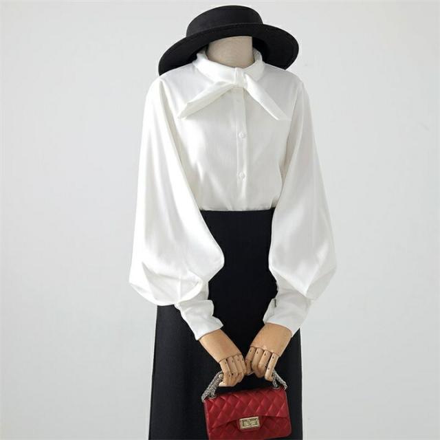 シャツ ブラウス レディース 長袖 フォーマル ポワン袖 卒業式 入学式 オフィス インナー トップス スーツ 春 秋 仕事 カジュアル 面接 説明会 OL 通勤 プルオーバー とろみ 大 体型カバー