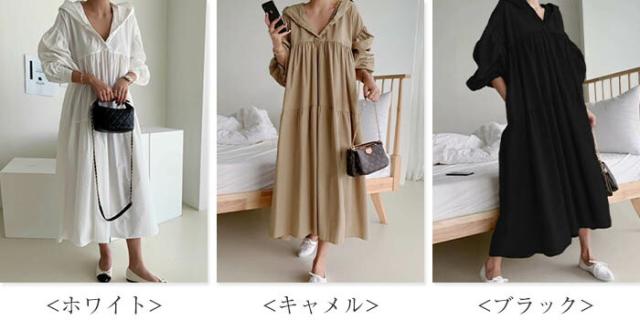 ワンピース ティアード ロング レディ レディースファッション 続々登場 ホワイト キャメル ブラック