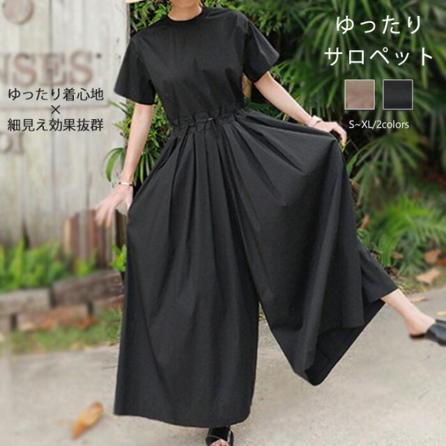 オールインワン レディース 半袖 春 夏 大きいサイズ パンツドレス サロペット つなぎ ワイドパンツ ロングパンツ オーバーオール サロペ ワイド パンツ 楽ちん 普段着 通学 デート お呼ば 通勤