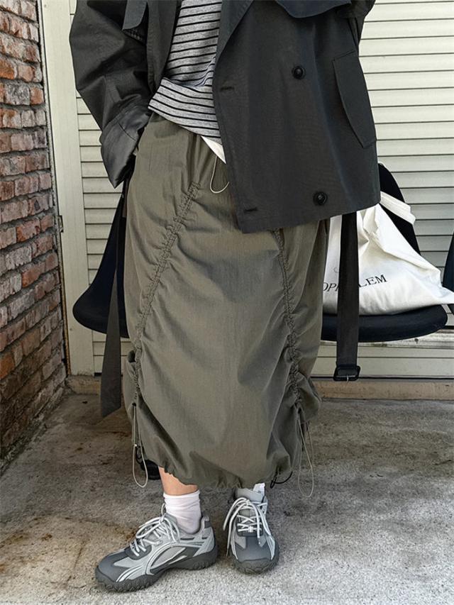 カーゴスカート ロングスカート ロング ボトムス スカート 人気 ホワイト カーキ M L