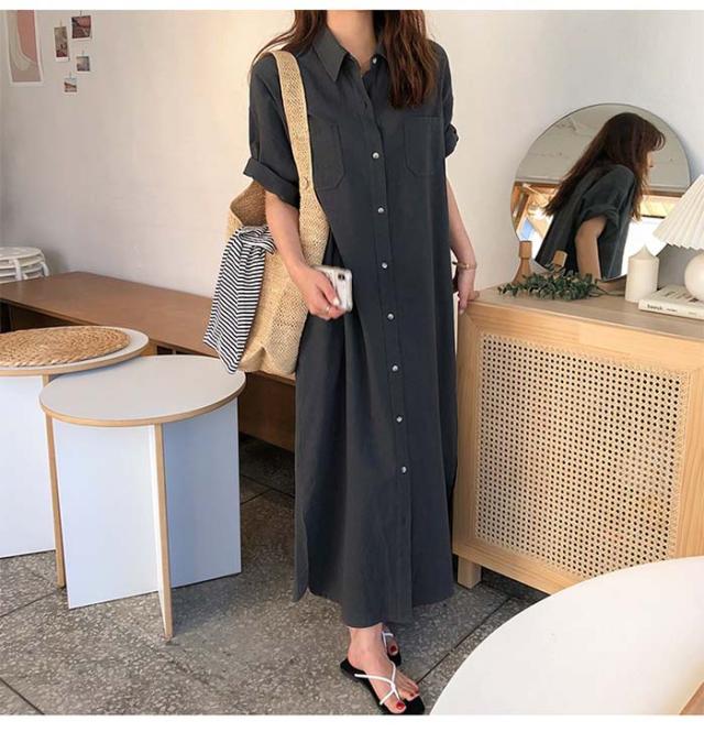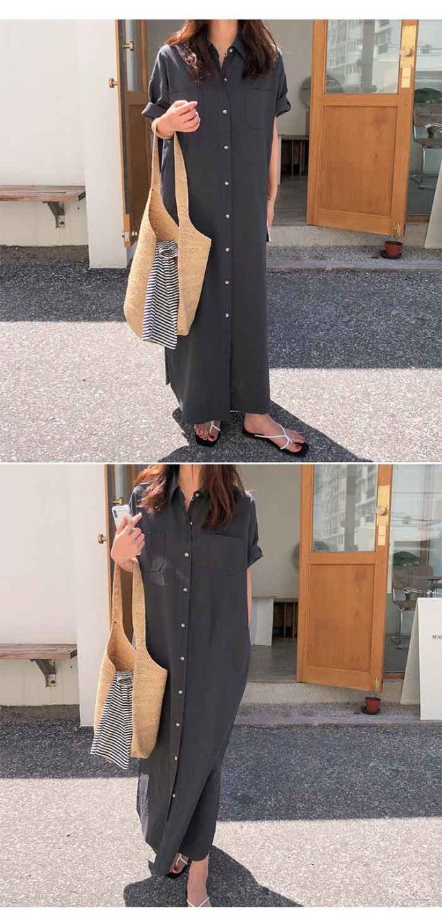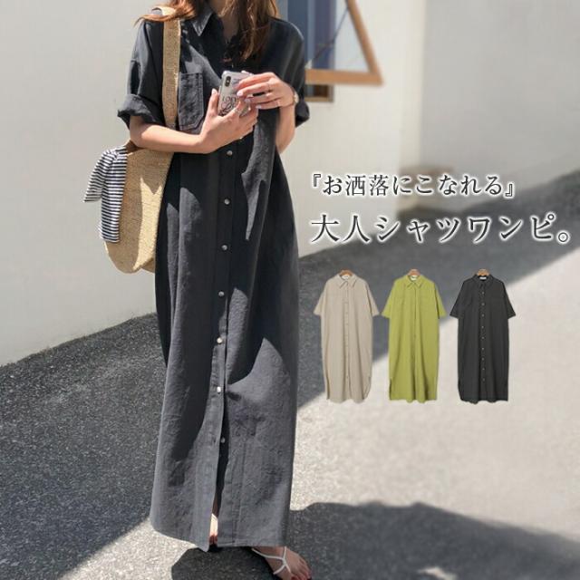 シャツワンピース ロングシャツワンピー アイボリー カーキ ダークグレー