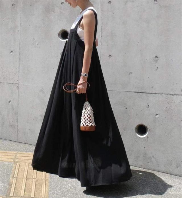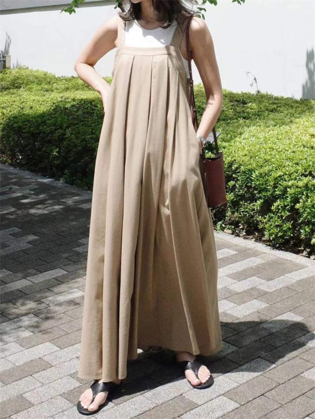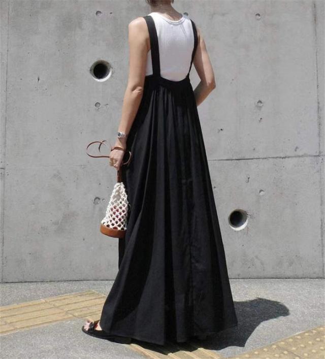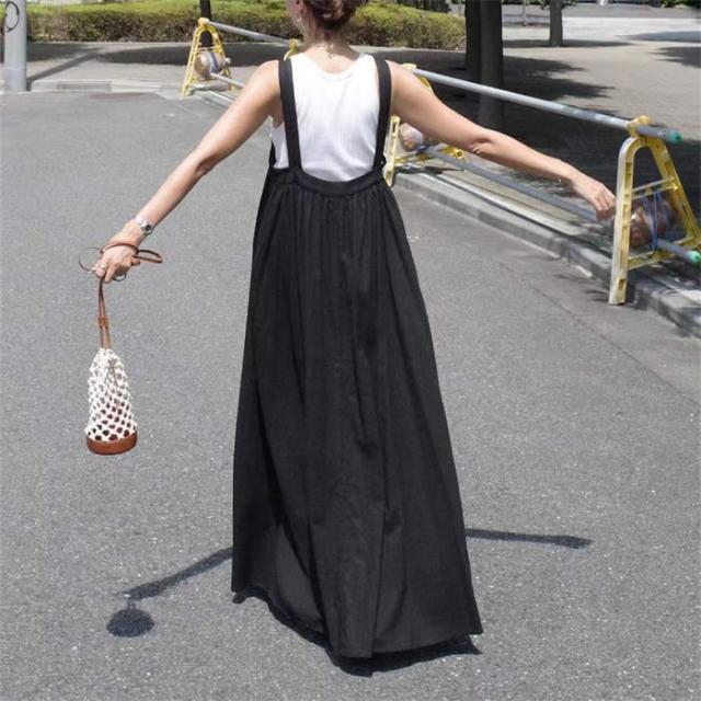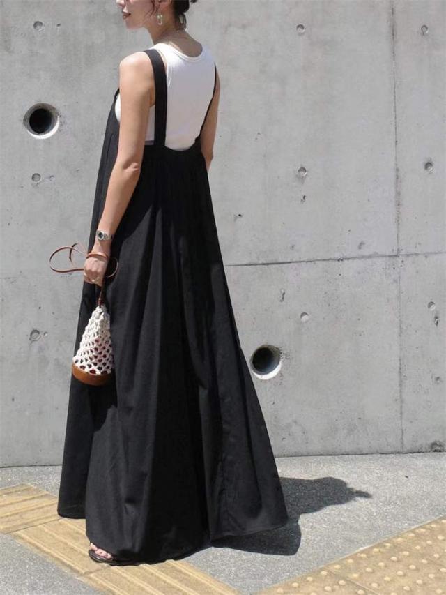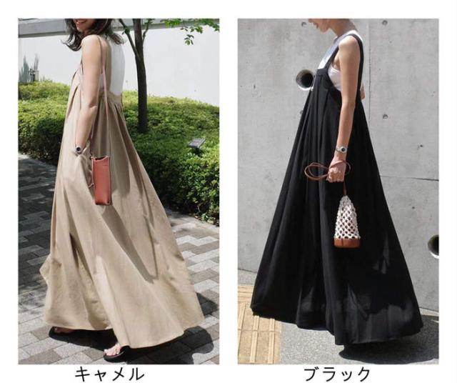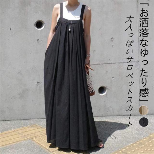 サロペット スカート レディース キャミワンピース ジャンパースカート サロペットスカート きれいめ 黒 大人 オフィス シンプル レイヤード ロング 無地 フレア 楽ちん カジュアル ブ 大人可愛い
